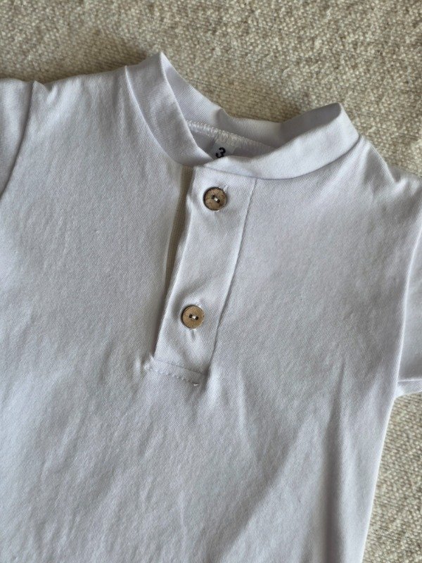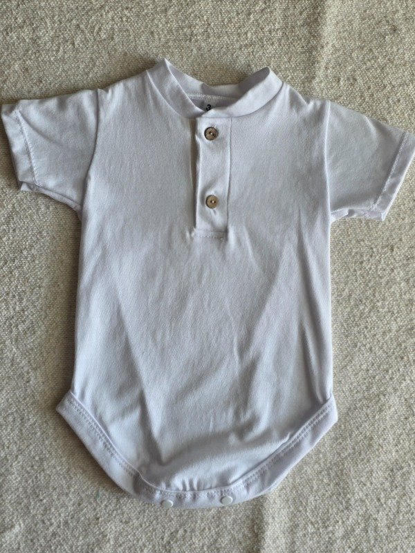 ¡Elegancia y comodidad para tu bebé! Body con cuello mao, liviano y fácil de usar, ideal para sus primeros looks de verano.